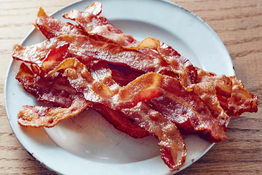 Bacon is a popular processed meat made from the belly or back cuts of pork, typically cured and then smoked for flavor.